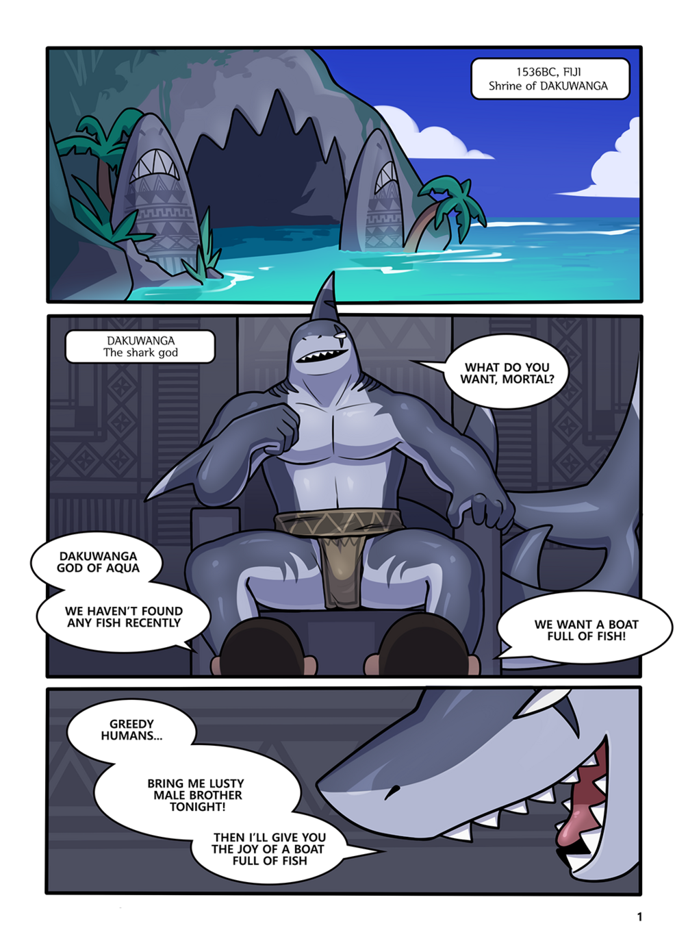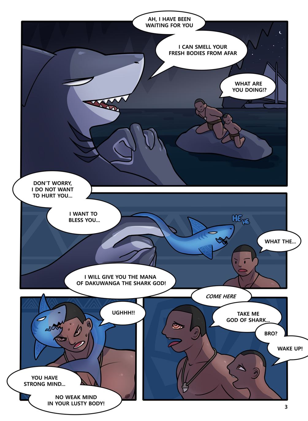 "The human brothers were blessed by Dakuwanga the shark god and turned into sharks..."